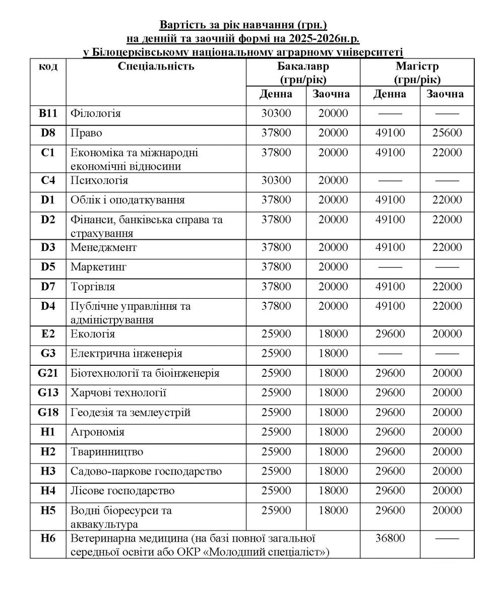Державне замовлення та вартість навчання